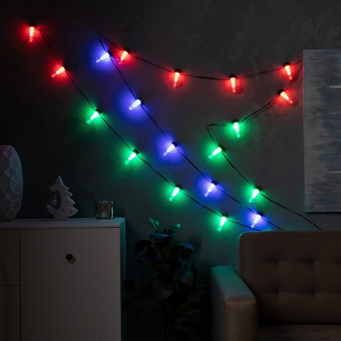 Умная гирлянда «Нить» 6 м с насадками «Лампочки», IP20, тёмная нить, 20 LED, свечение RGB, USB