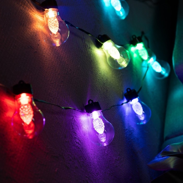 Умная гирлянда «Нить» 6 м с насадками «Лампочки с шишками», IP20, тёмная нить, 20 LED, свечение RGB, USB