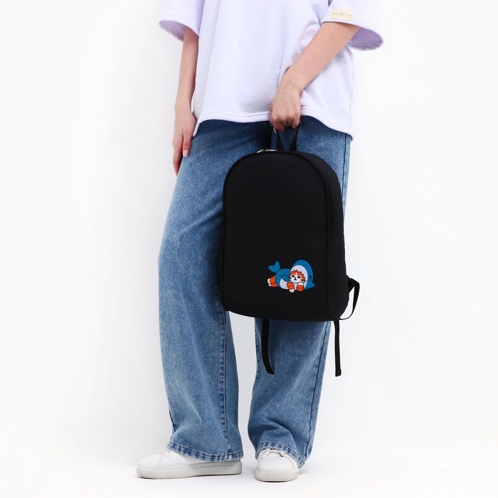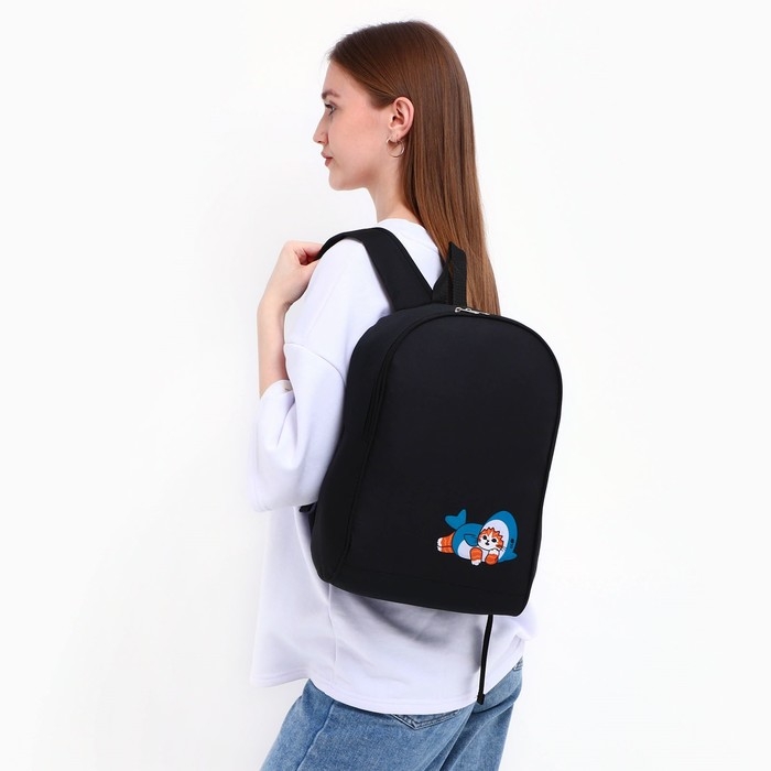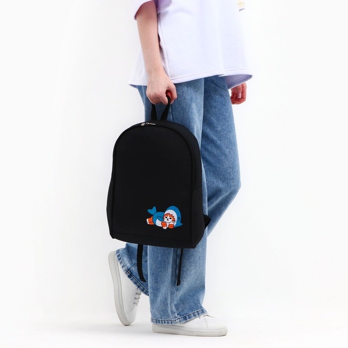 Рюкзак школьный текстильный «Котик в костюме», 38х14х27 см, цвет чёрный