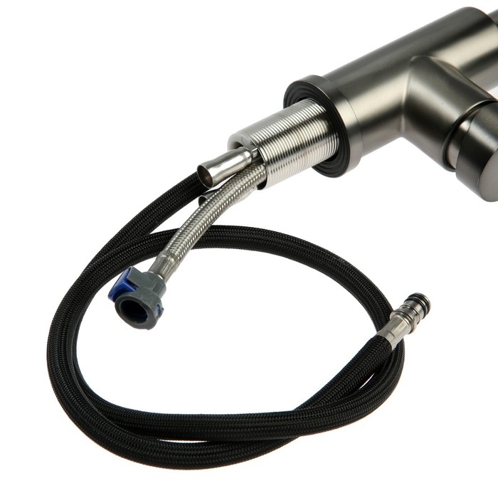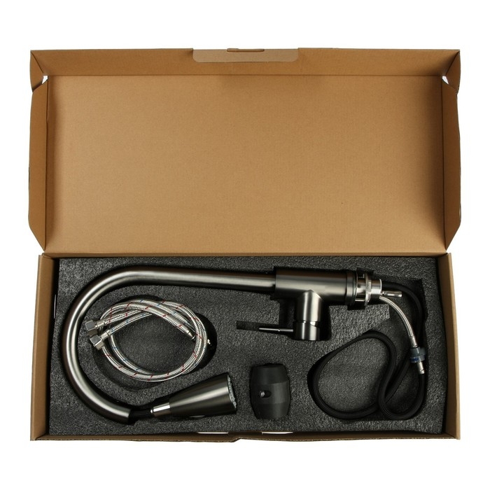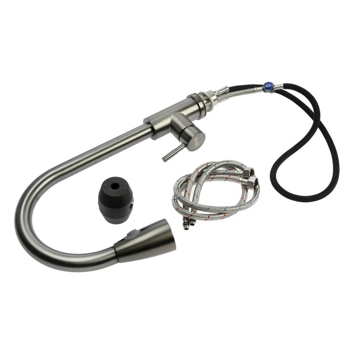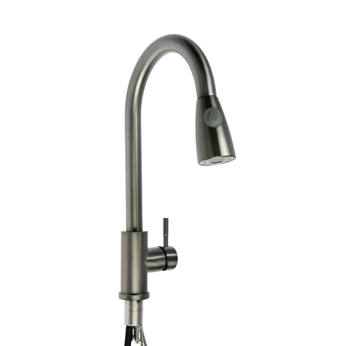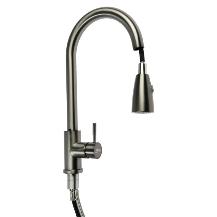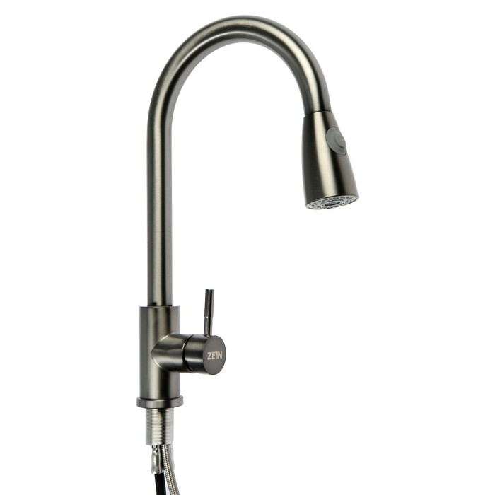 Смеситель для кухни ZEIN Z4961, нержавеющая сталь, с выдвижной лейкой, 2 режима, серый