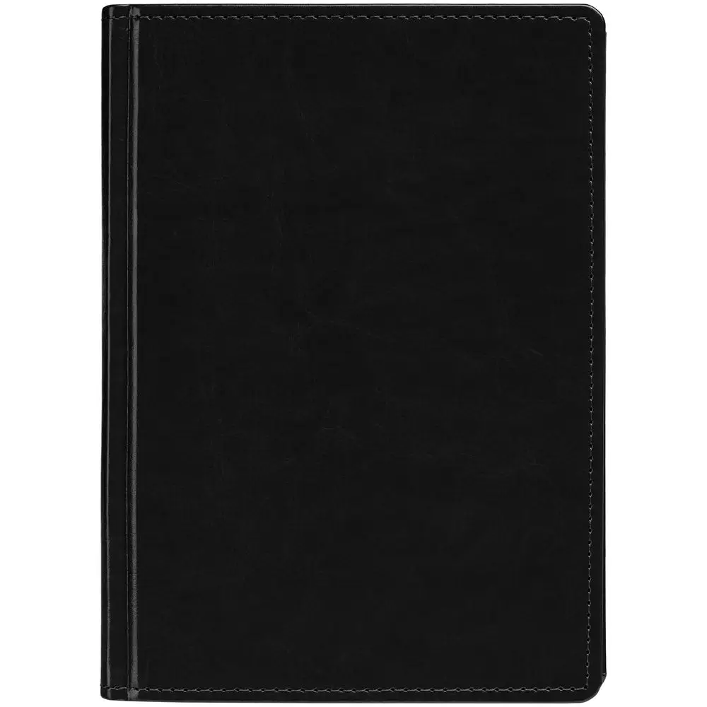 Ежедневник с твердой обложкой без поролона, выполнен из материала Nebraska, черный АА, дополнен ляссе и капталом в цвет обложки.