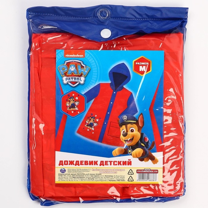 Дождевик детский, размер M, 100-110 см, Щенячий патруль