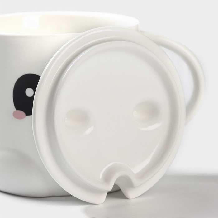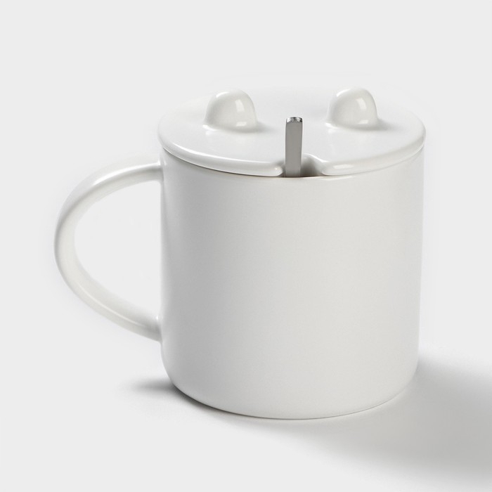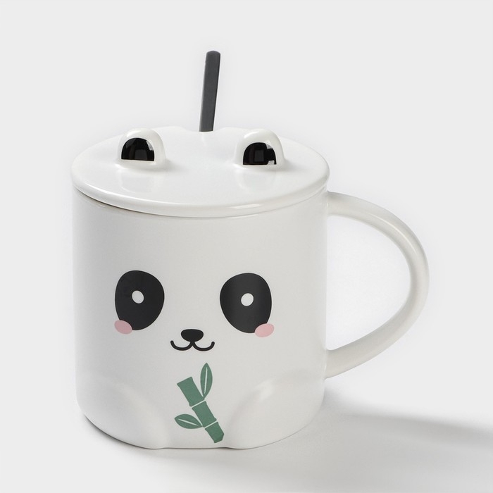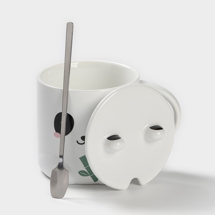 Кружка керамическая с ложкой «Панда», 350 мл, цвет белый