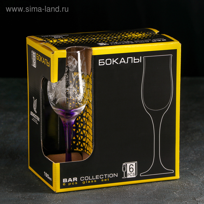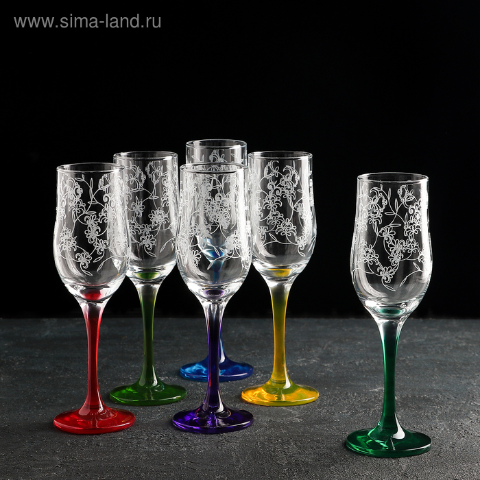 Набор бокалов для шампанского Рrimavera, стеклянный, 190 мл, 6 шт, гравировка, напыление