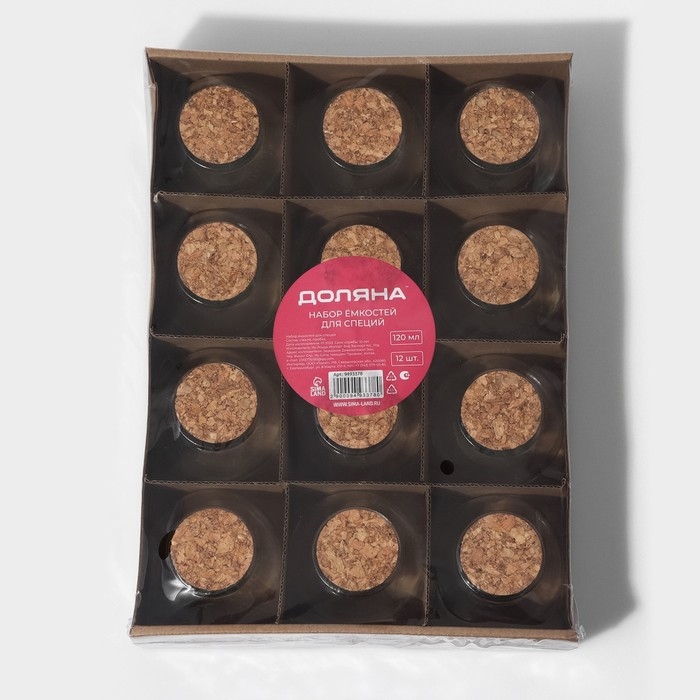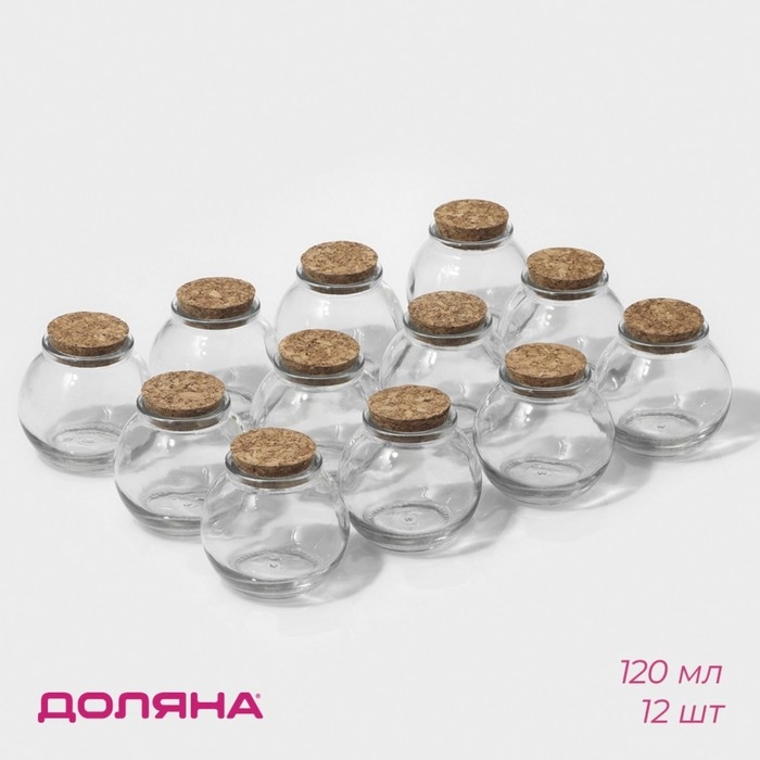 Набор баночек стеклянных для специй с пробковой крышкой Доляна «Парфе», 120 мл, 7×7 см, 12 шт