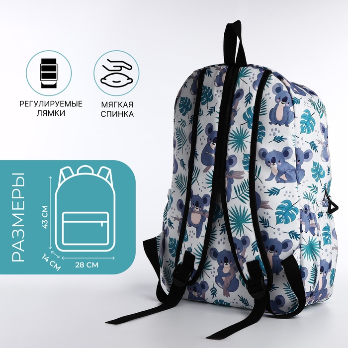 Рюкзак школьный из текстиля, 3 карманов, цвет белый/разноцветный