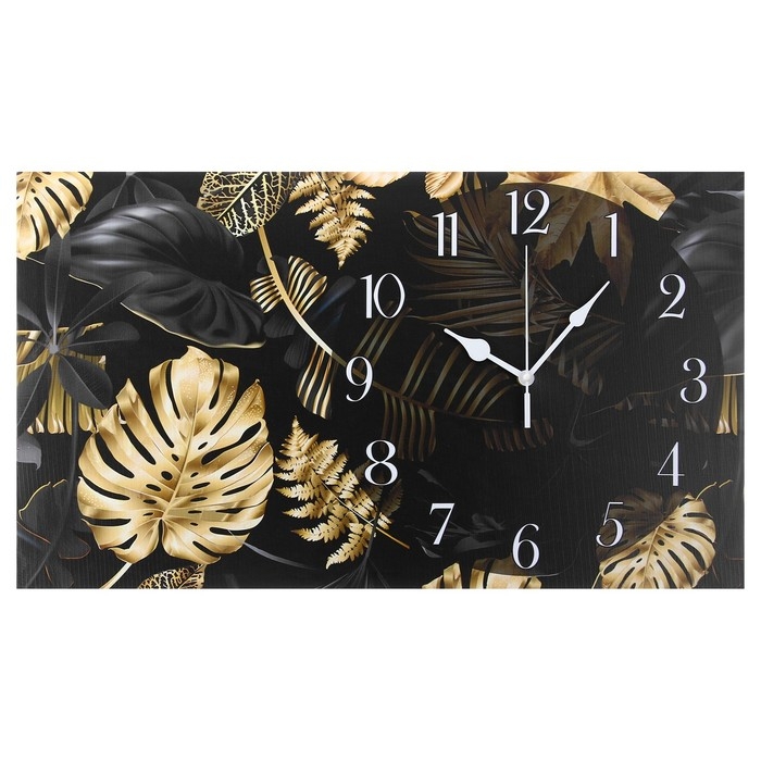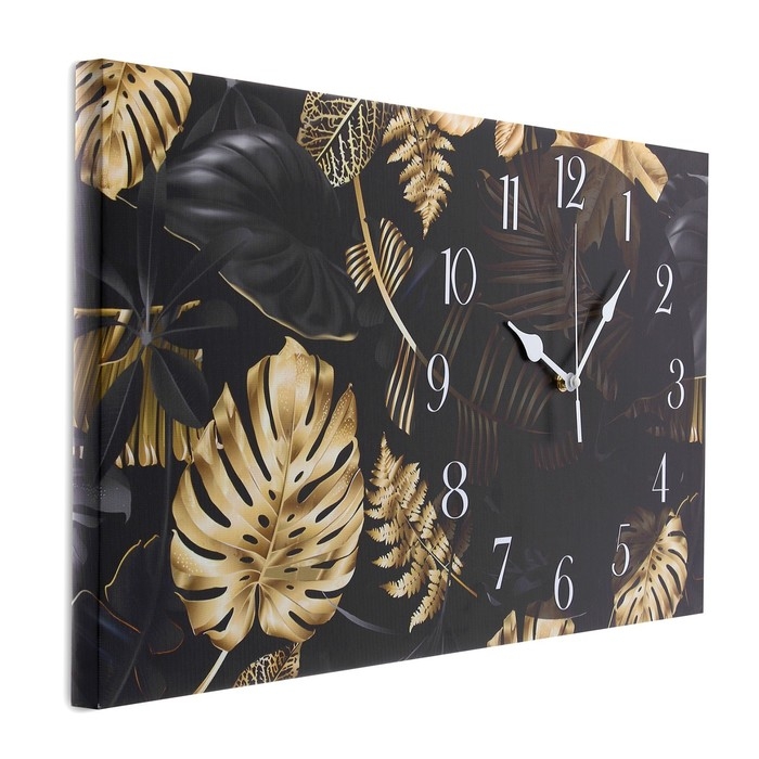 Часы-картина настенные, на холсте, интерьерные, бесшумные "Листья", 35 х 60 см