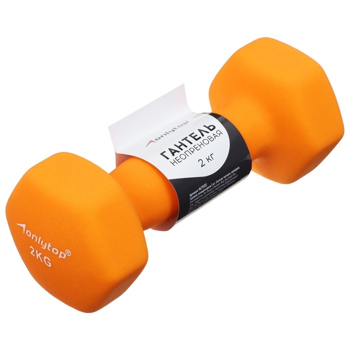 Гантель неопреновая ONLYTOP, 2 кг, цвет оранжевый