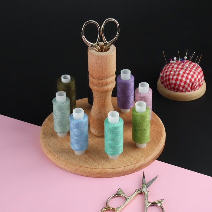 Органайзер-стойка для ниток, деревянная, 8 катушек, h = 13 см, d = 16 см