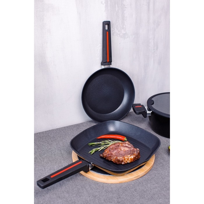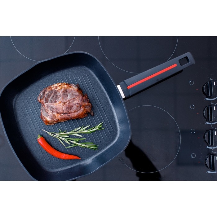 Сковорода гриль квадратная Magistro Flame, 28×28 см, антипригарное покрытие, индукция, цвет чёрный