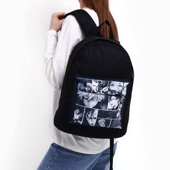 Рюкзак школьный молодёжный «Аниме», 33х13х37, отдел на молнии, н/карман, чёрный