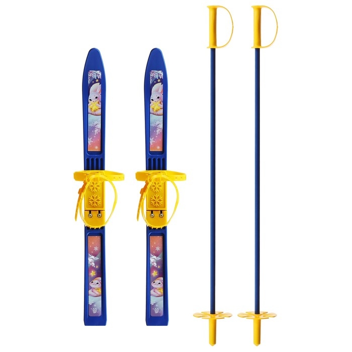 Лыжный комплект Baby, 70 см с креплениями и палками длиной 70 см, цвета микс