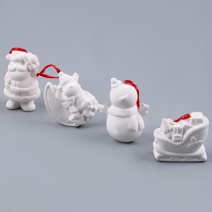Набор ёлочных украшений под раскраску «Волшебный», 4 шт., с подвесом, кисть