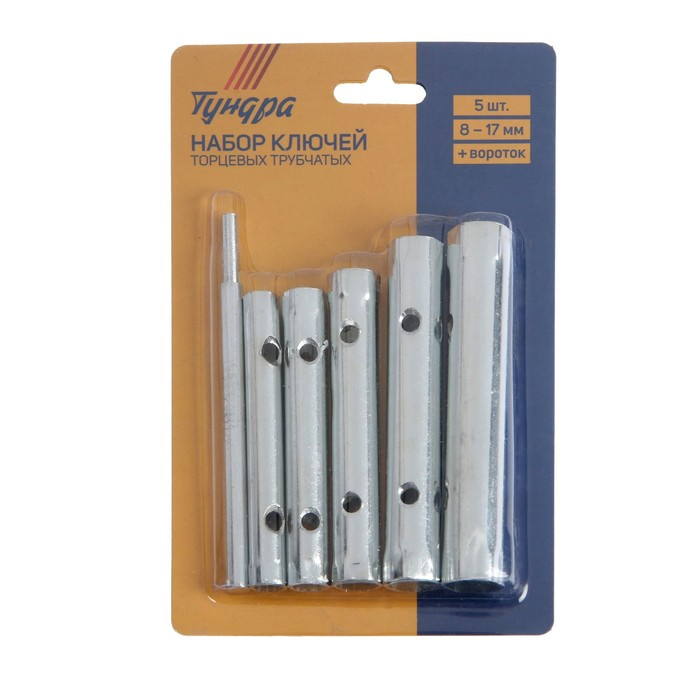 Набор ключей торцевых трубчатых ТУНДРА, оцинкованные, 8 - 17 мм, вороток, 6 предметов