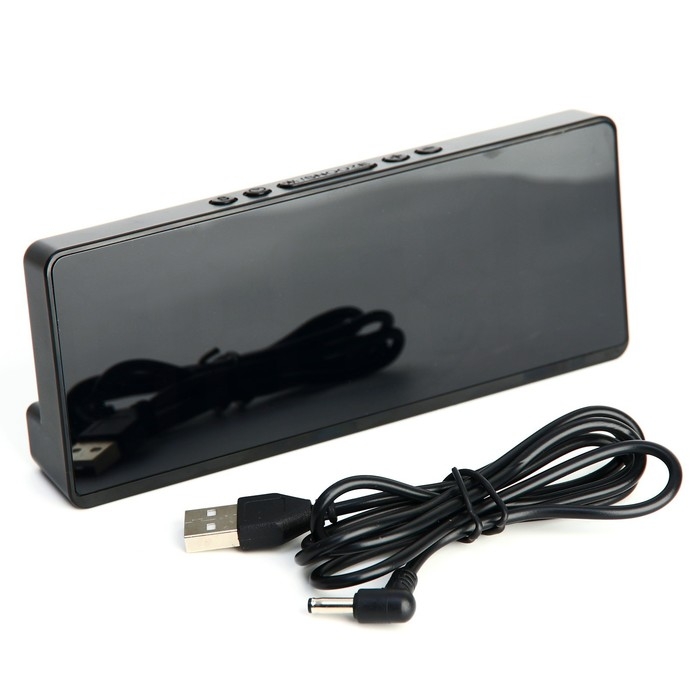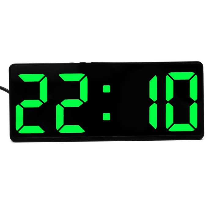 Часы настольные электронные: будильник, термометр, календарь, USB, 15х6.3 см, зеленые цифры