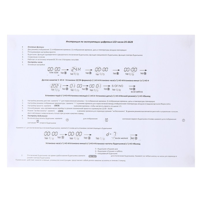 - Несколько режимов индикации дисплея: только время или время, дата и Температура (автоматическое попеременное переключение)