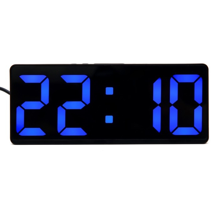 Часы настольные электронные: будильник, термометр, календарь, USB, 15х6.3 см, синие цифры