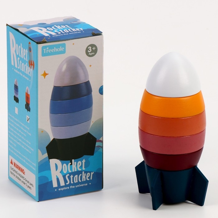 Деревянная пирамидка «Ракета» 7 × 7 × 17 см
