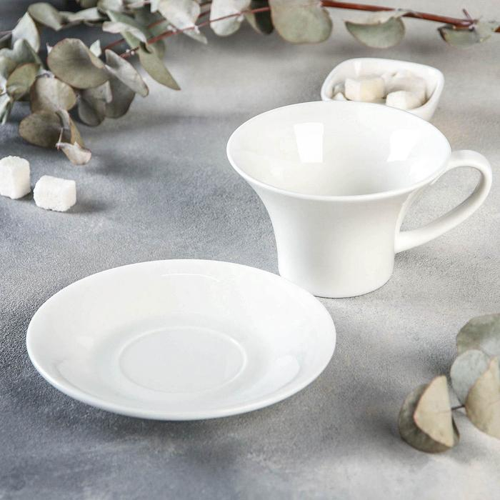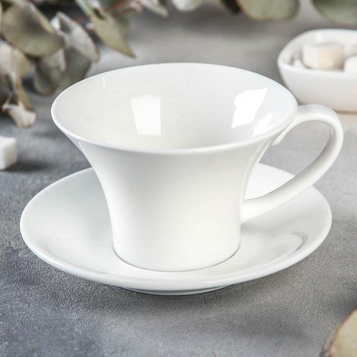 Чайная пара фарфоровая Wilmax, 2 предмета: чашка 400 мл, блюдце d=18,4 см, цвет белый