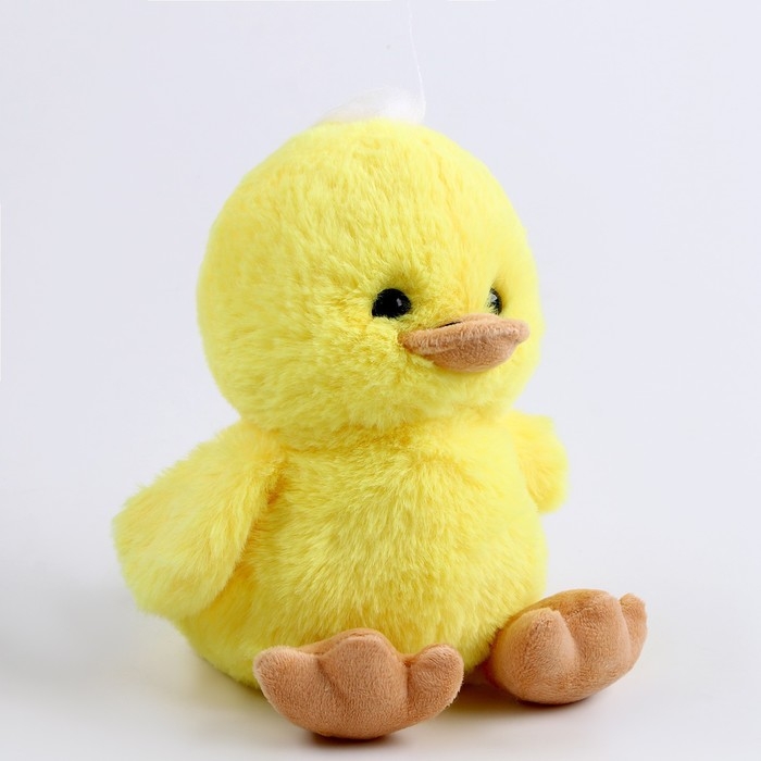 Утенок выполнен из мягкого плюша, а его лапки и клюв выполнены из пластика.