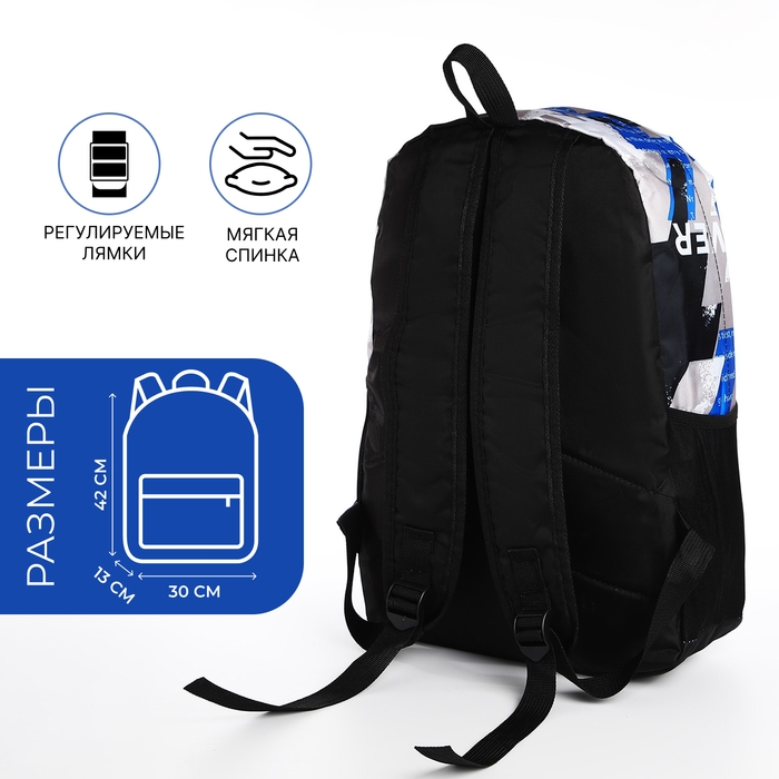 Рюкзак школьный из текстиля на молнии, 3 кармана, цвет синий