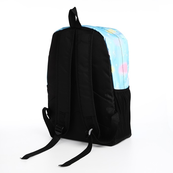 Рюкзак школьный на молнии, 3 наружных кармана, цвет голубой