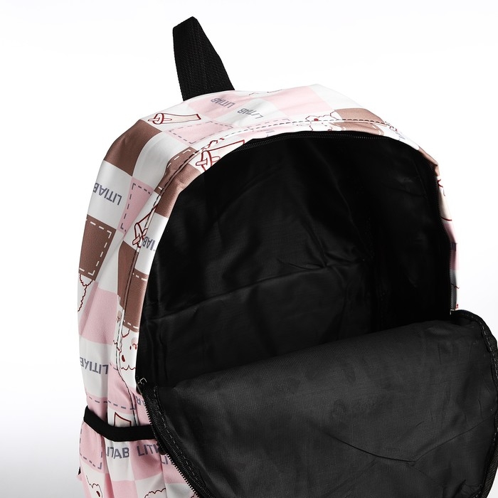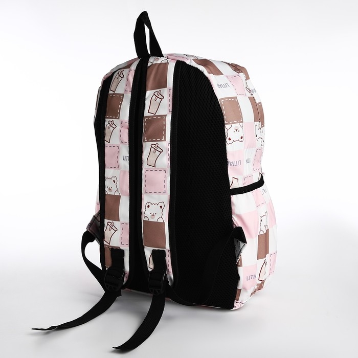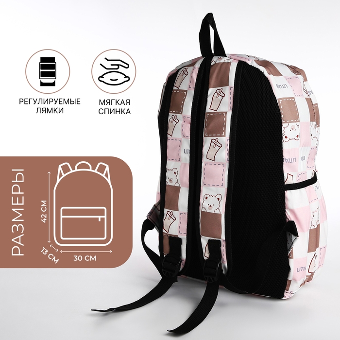 Рюкзак школьный из текстиля, 3 кармана, цвет бежевый/розовый