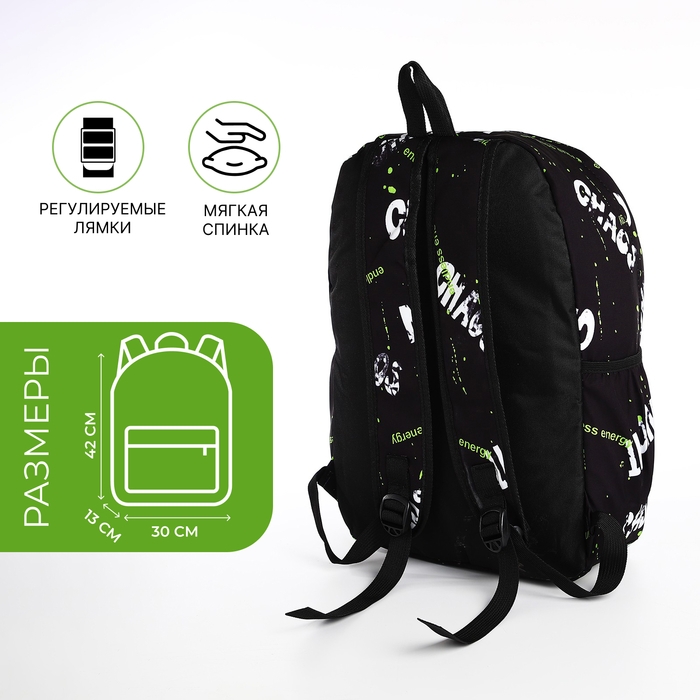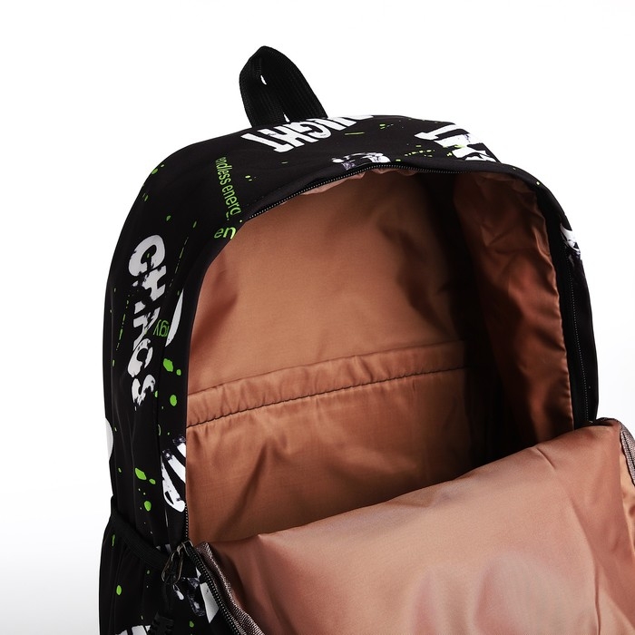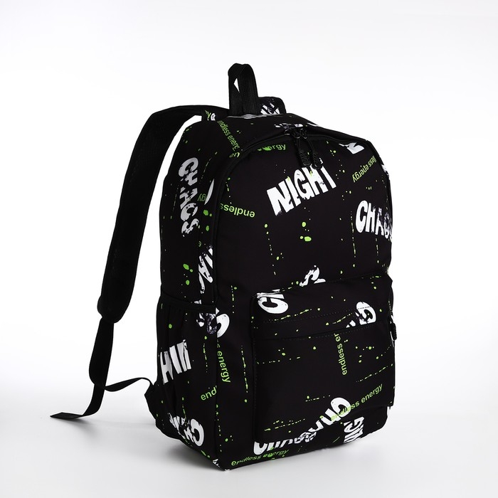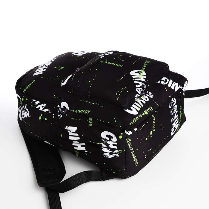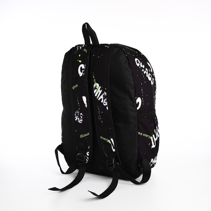 Рюкзак молодёжный из текстиля на молнии, 3 кармана, цвет чёрный/салатовый