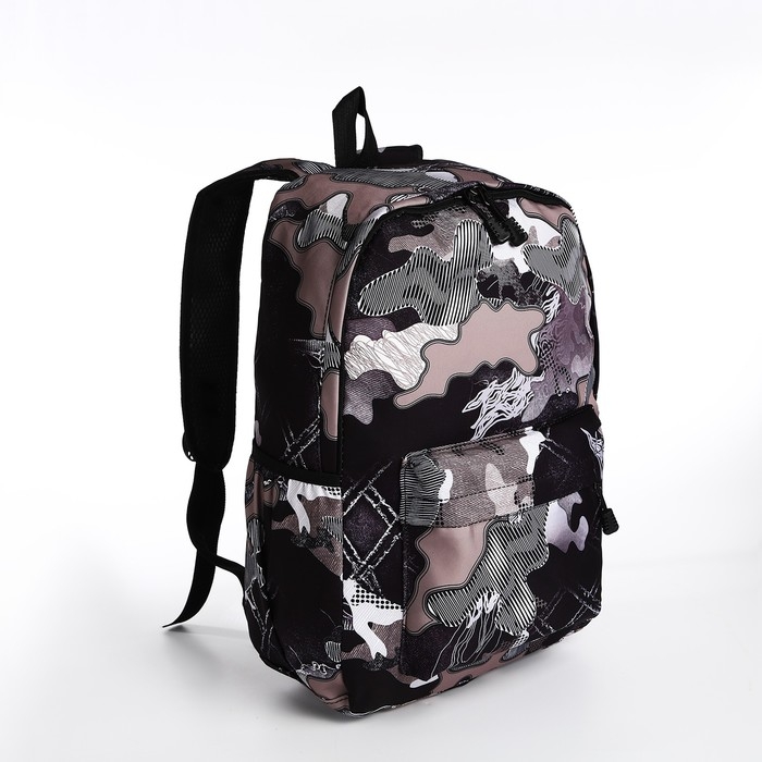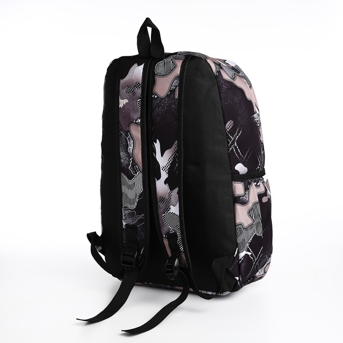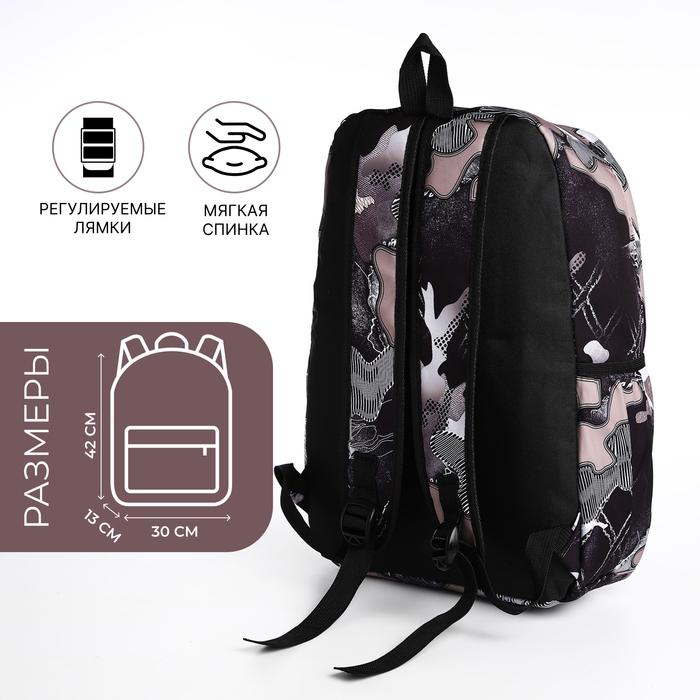 Рюкзак школьный из текстиля, 3 кармана, цвет чёрный/лиловый