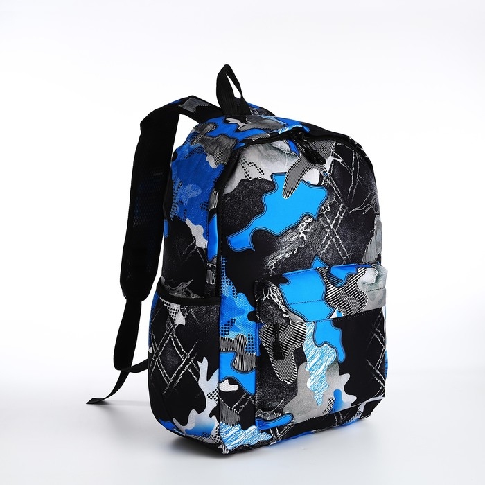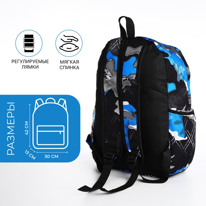 Рюкзак школьный из текстиля, 3 кармана, цвет синий