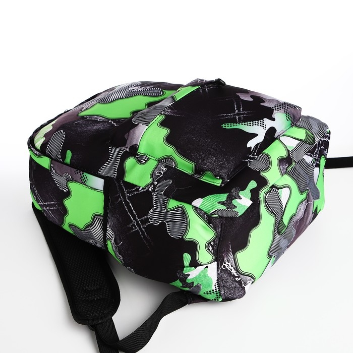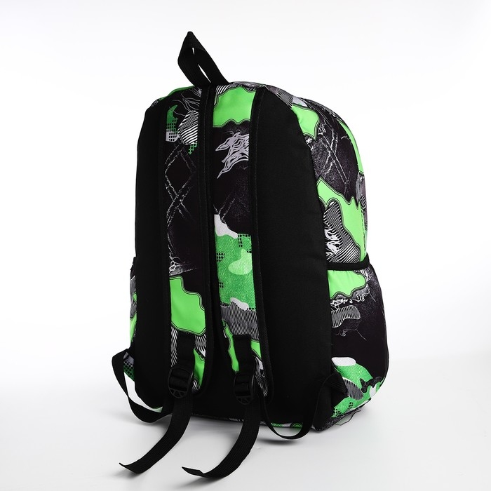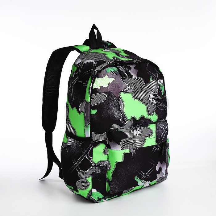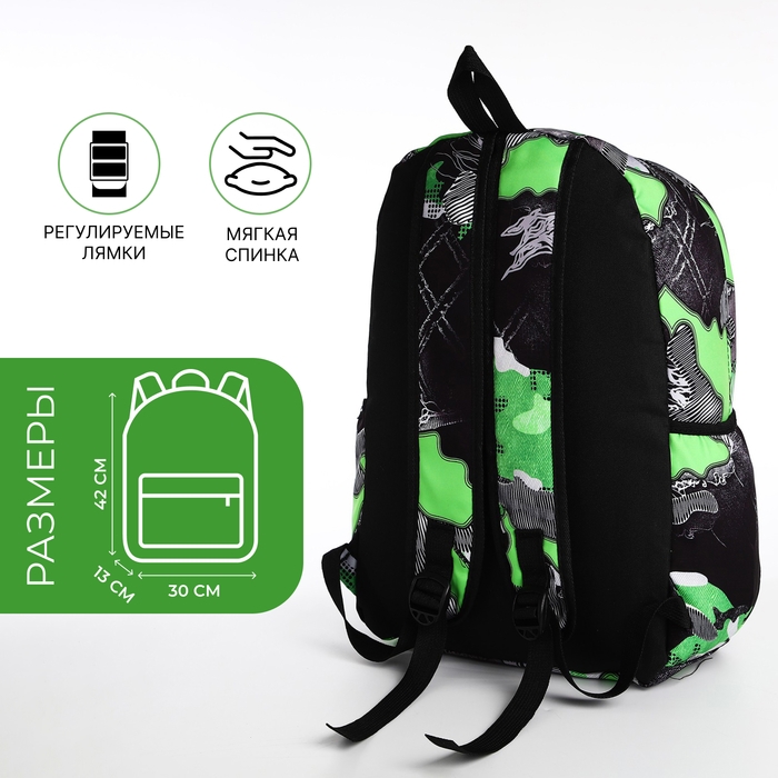 Рюкзак школьный из текстиля, 3 кармана, цвет серый/зелёный