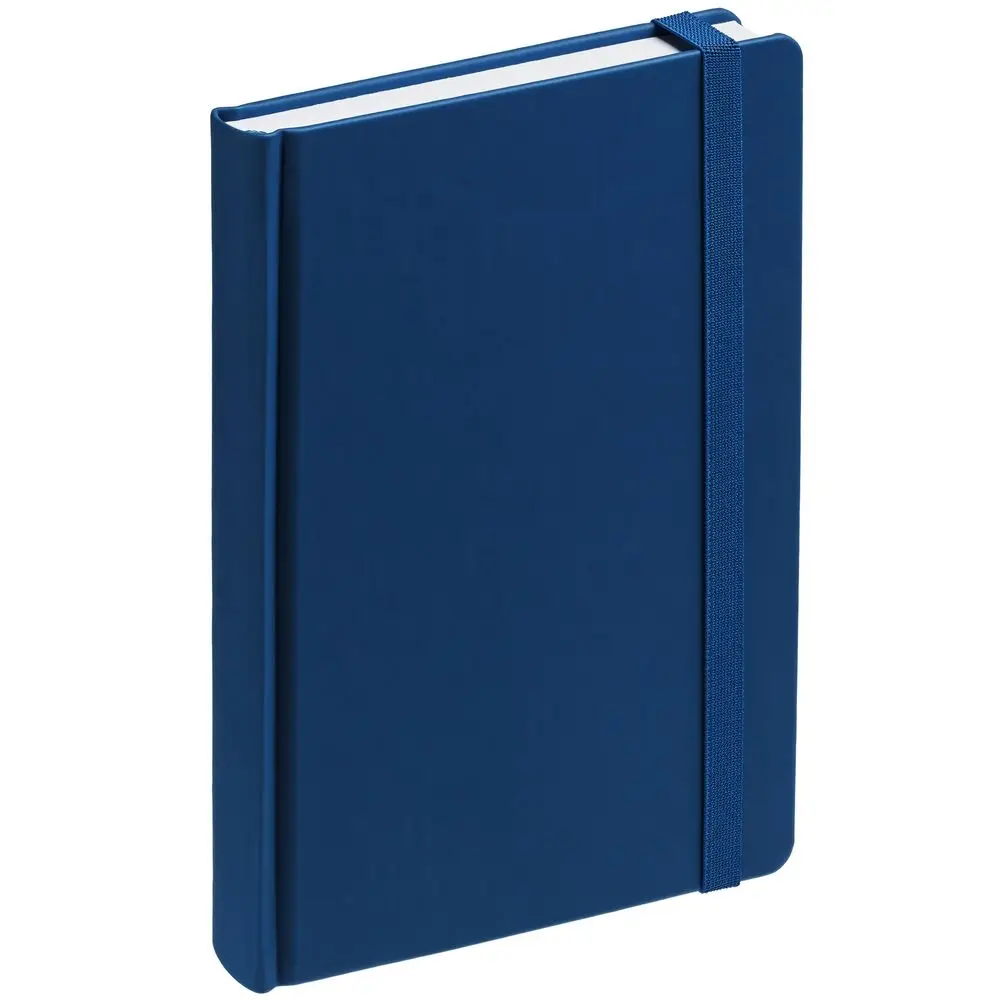 Ежедневник с твердой обложкой без поролона, выполнен из материала Soft Touch Ultra, синий НН, дополнен резинкой шириной 1 см, петлей-резинкой для ручки, капталом и ляссе синего цвета.