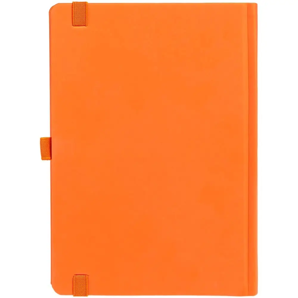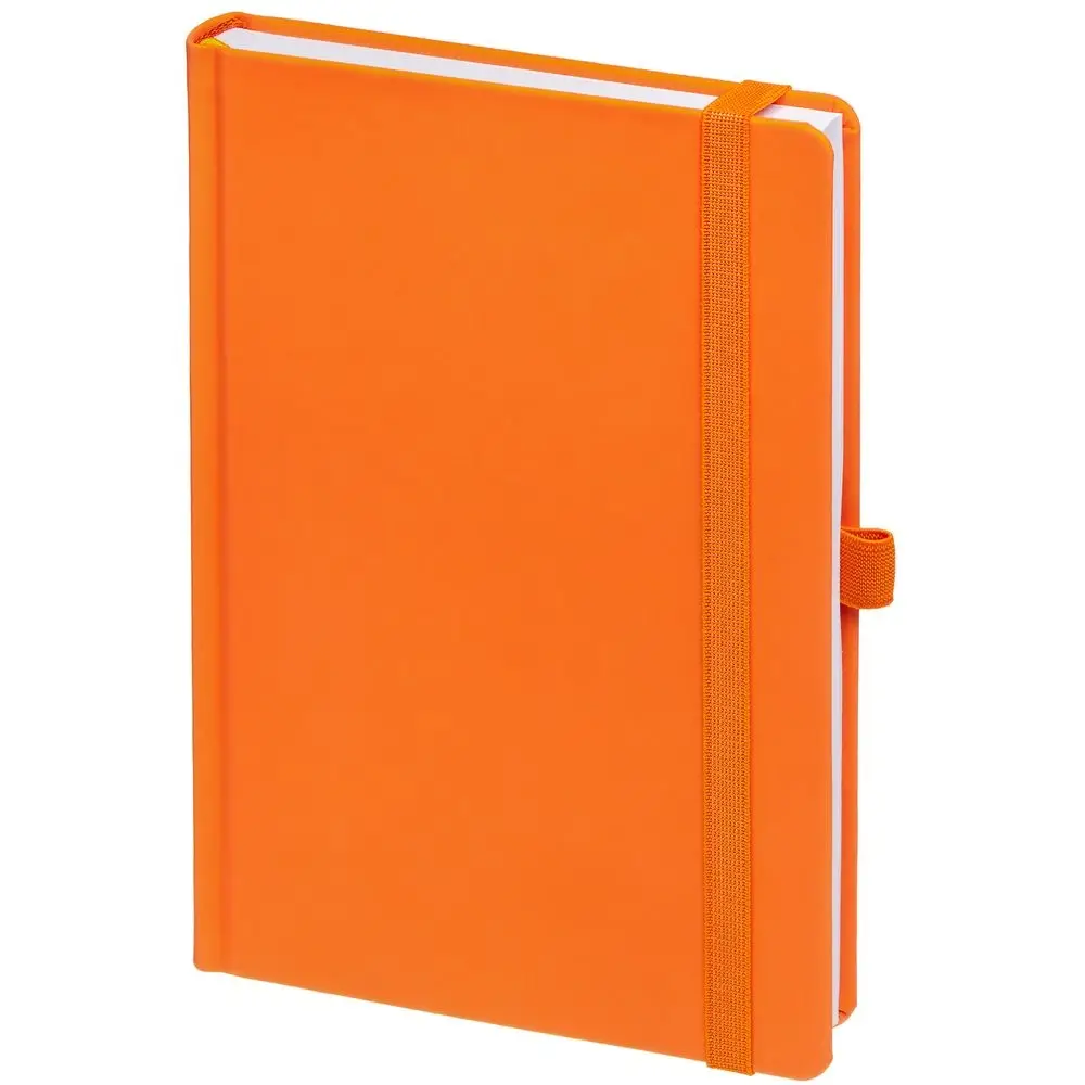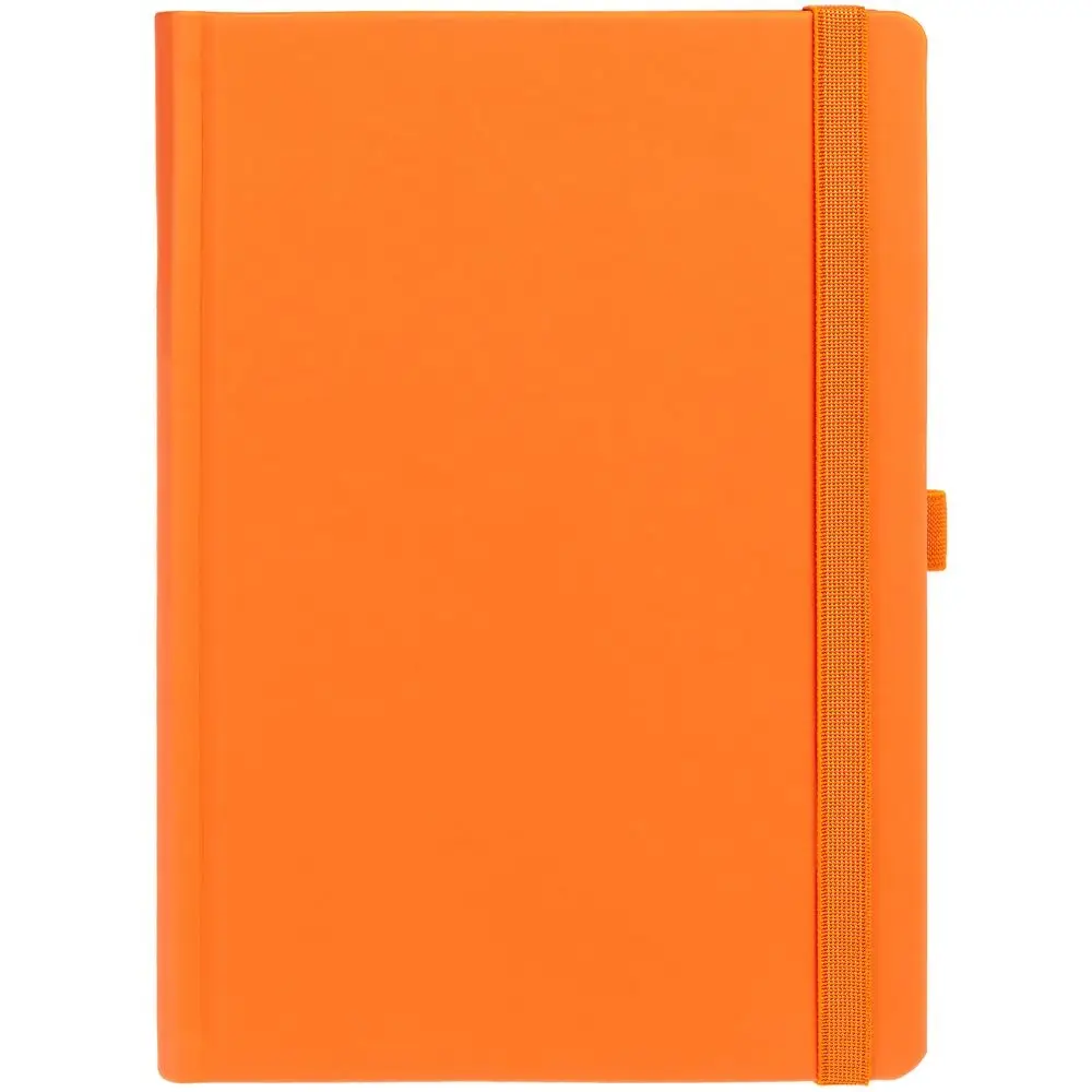 Ежедневник с твердой обложкой без поролона, выполнен из материала Soft Touch, оранжевый ОО, дополнен резинкой шириной 1 см, петлей-резинкой для ручки, капталом и ляссе оранжевого цвета.
