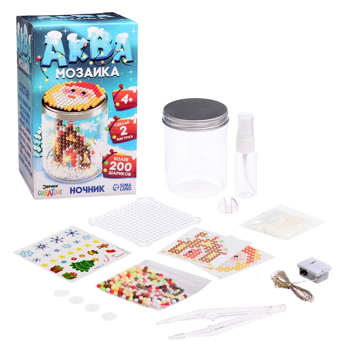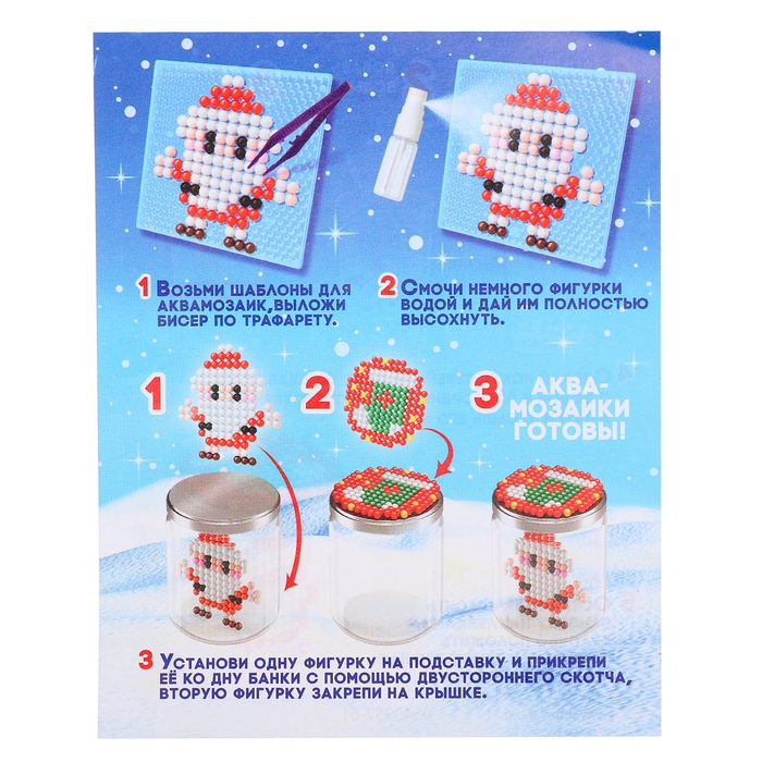 Аквамозаика «Снежная баночка» скрасит дни в ожидании Нового года и поможет весело и с пользой провести время. Ребёнок соберёт 2 объёмных фигурки из шариков-пикселей и создаст ночник своими руками.