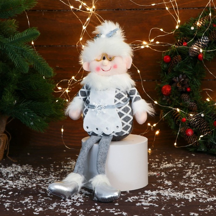 Мягкая игрушка "Бабушка Мороз в костюме с ремешком" 15х39 см, серый
