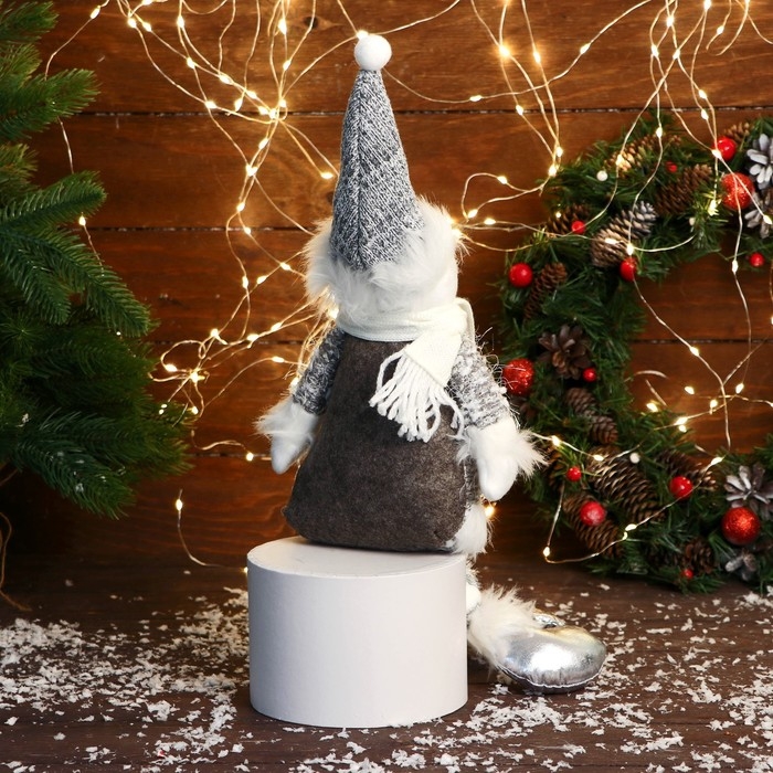Мягкая игрушка "Снеговик в колпаке и шарфике, ножки-бусинки" 15х39 см, серый