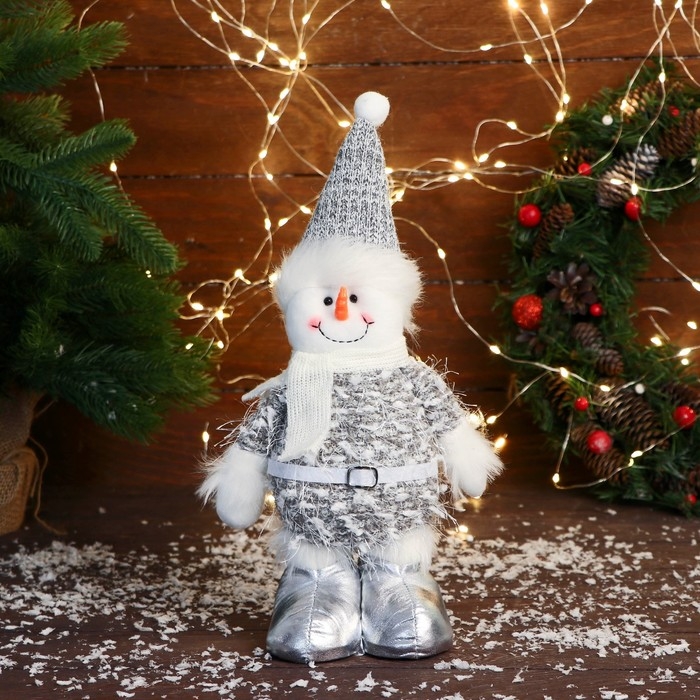 Мягкая игрушка "Снеговик в колпаке и шарфике" 16х30 см, бело-серый