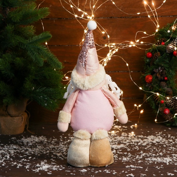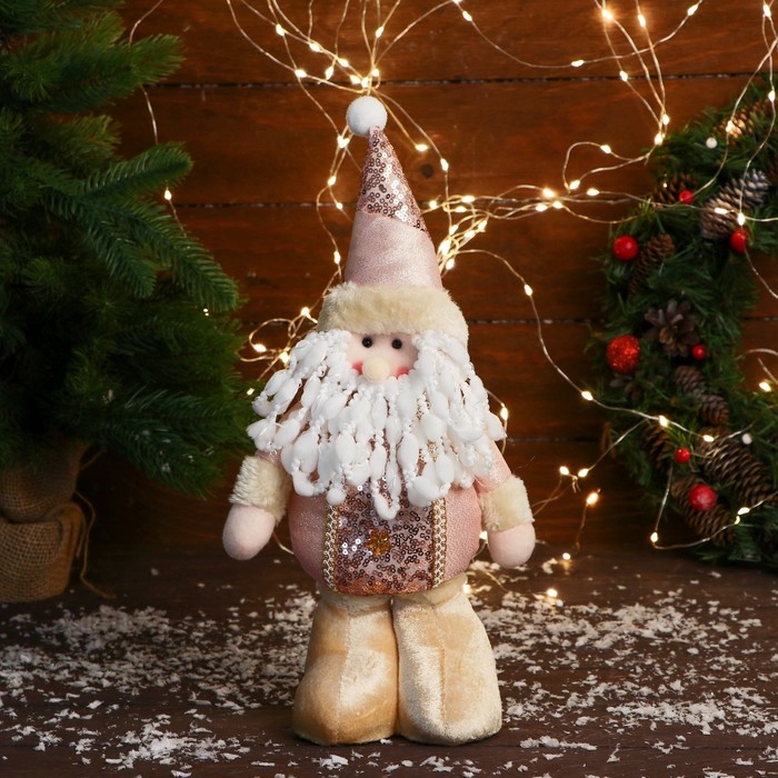 Мягкая игрушка "Дед Мороз в костюме с цветочками" стоит, 13х30 см, розовый