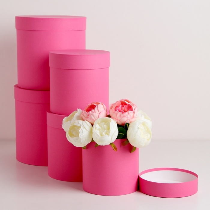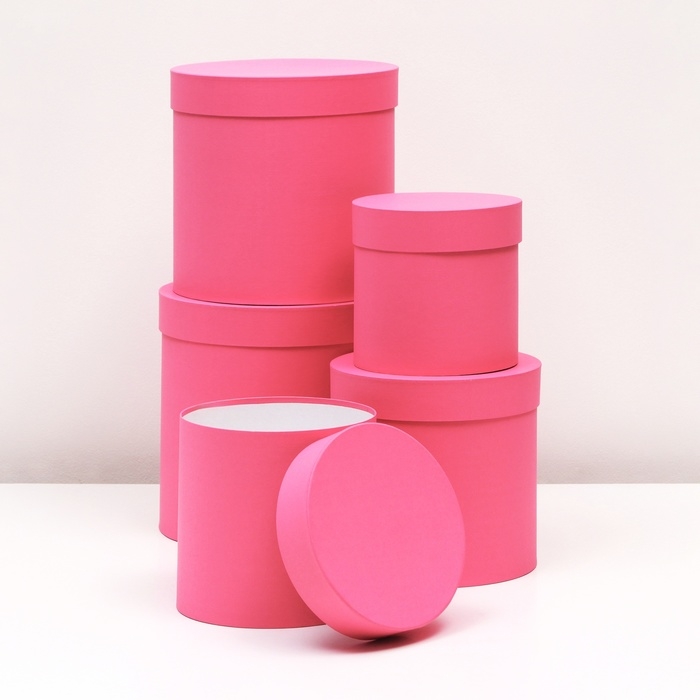Набор круглых коробок 5в1 "Краски", розовый, 25 х 25 х 25 - 19 х 19 х 19 см