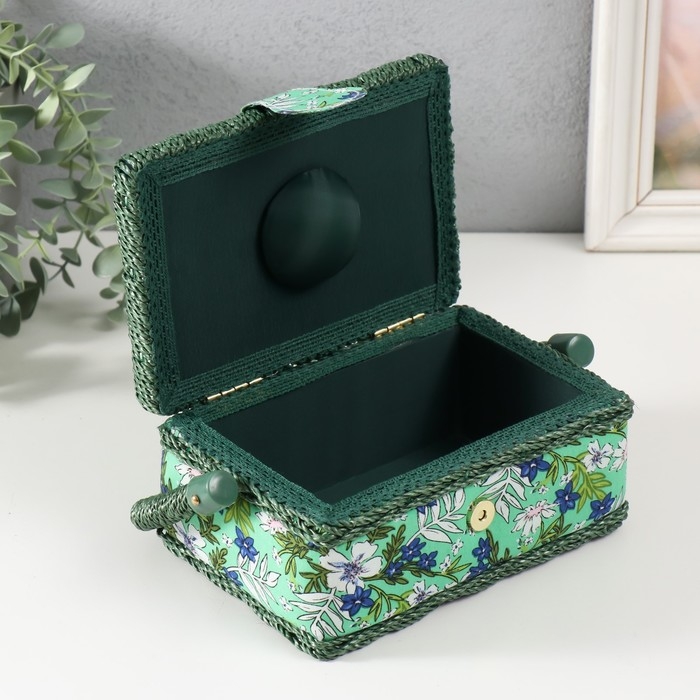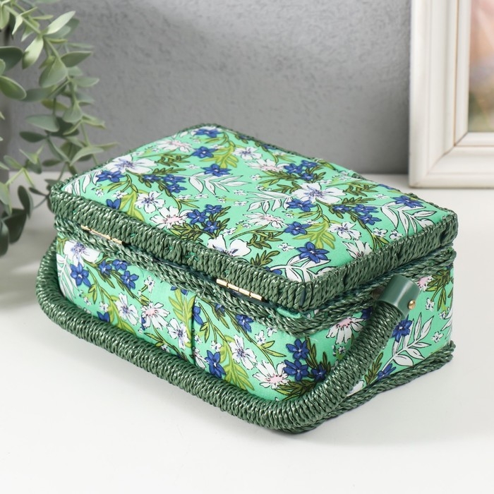 Шкатулка для рукоделия "Полевые цветы на зелёном" 18х12х9,5 см
