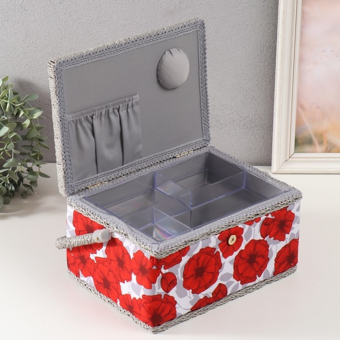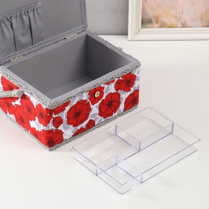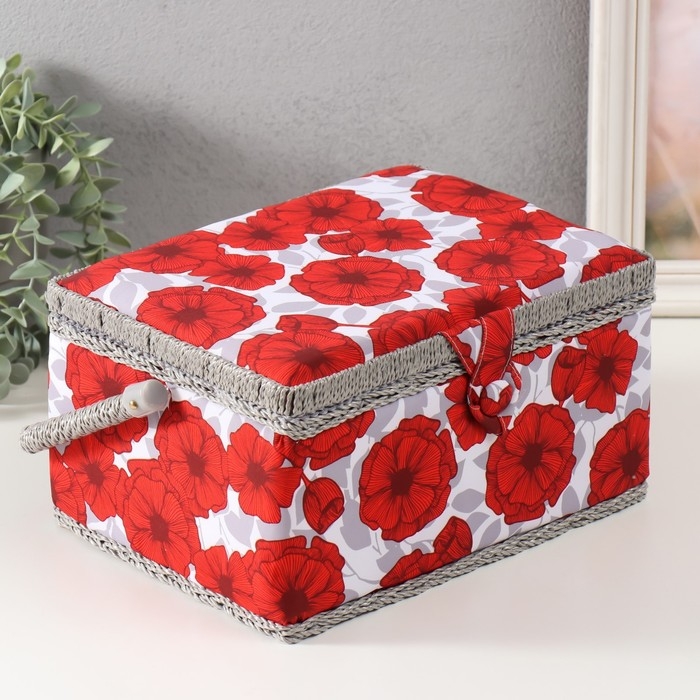 Шкатулка для рукоделия "Красные маки на белом" 19х26х14,5 см