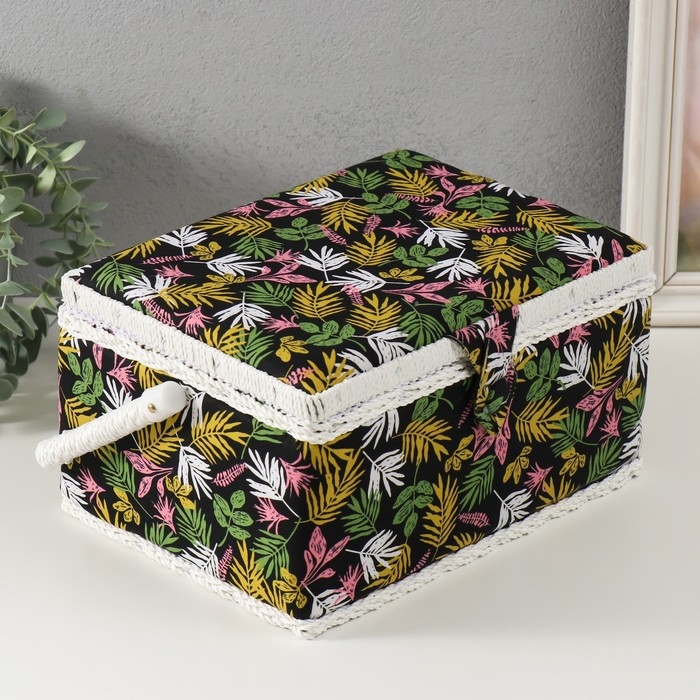 Шкатулка для рукоделия "Лесные веточки на чёрном" 19х26х14,5 см
