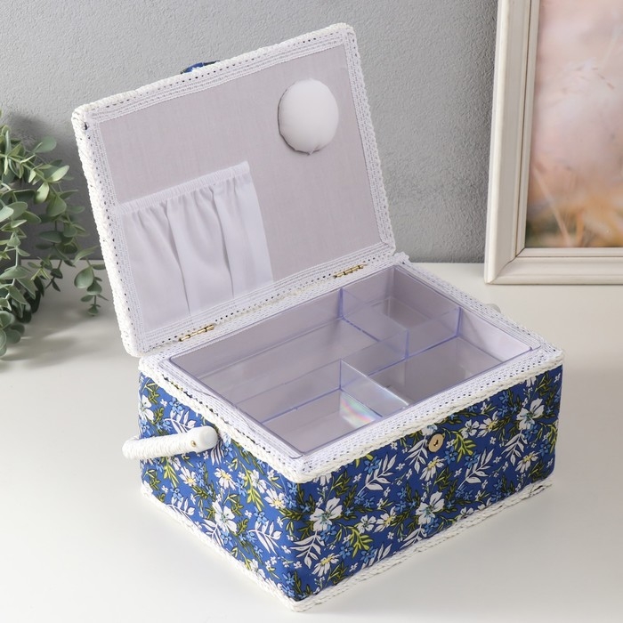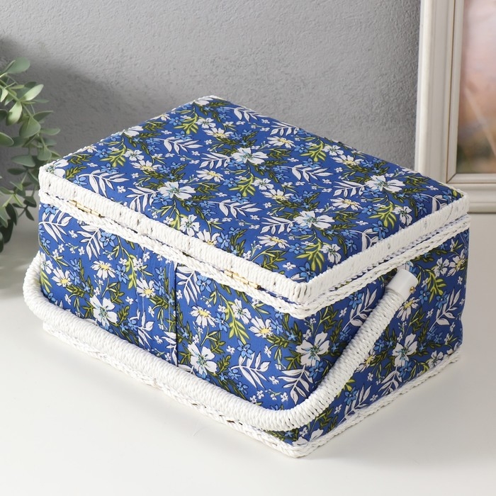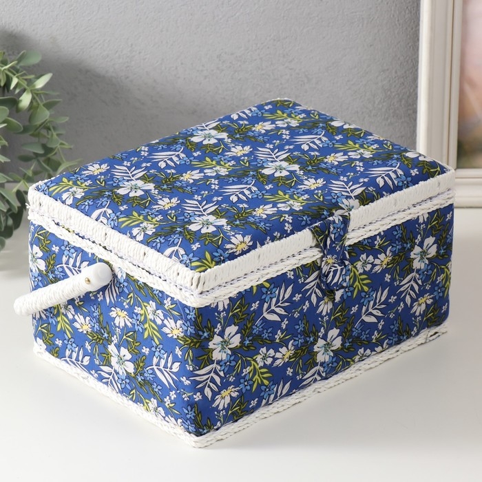 Шкатулка для рукоделия "Полевые цветы на синем" 19х26х14,5 см