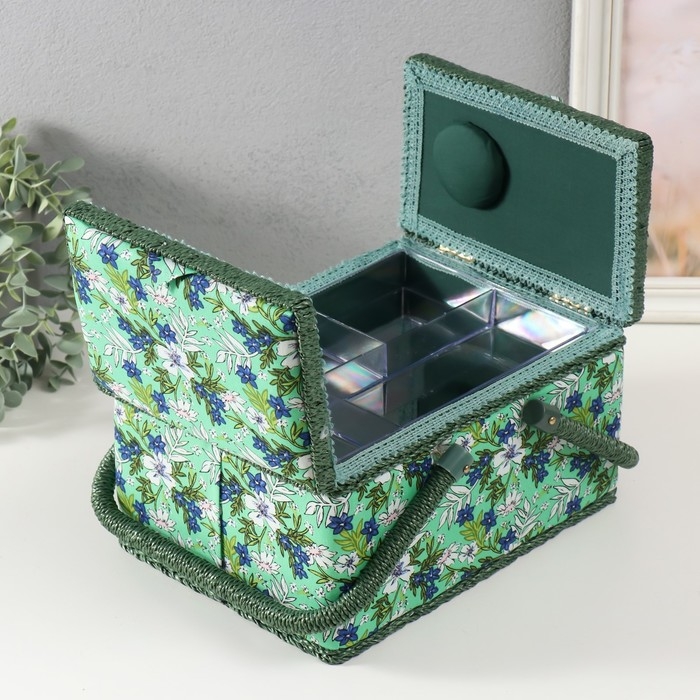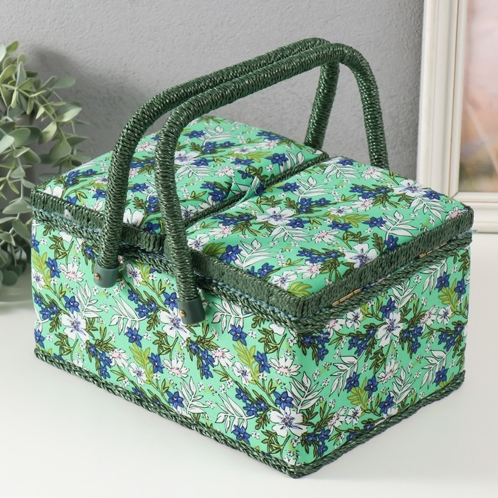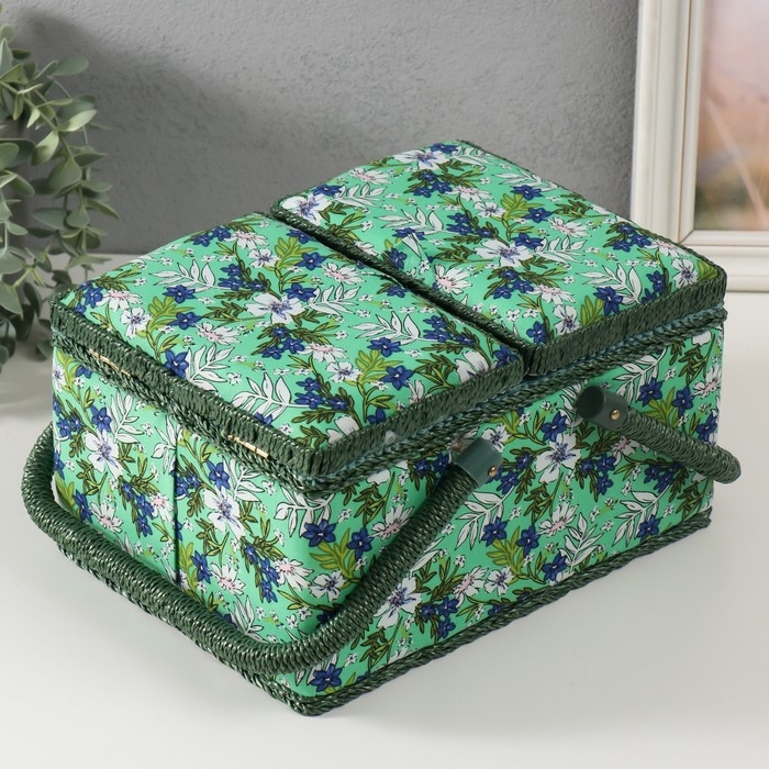 Шкатулка для рукоделия "Полевые цветы на зелёном" 19х26х14,5 см