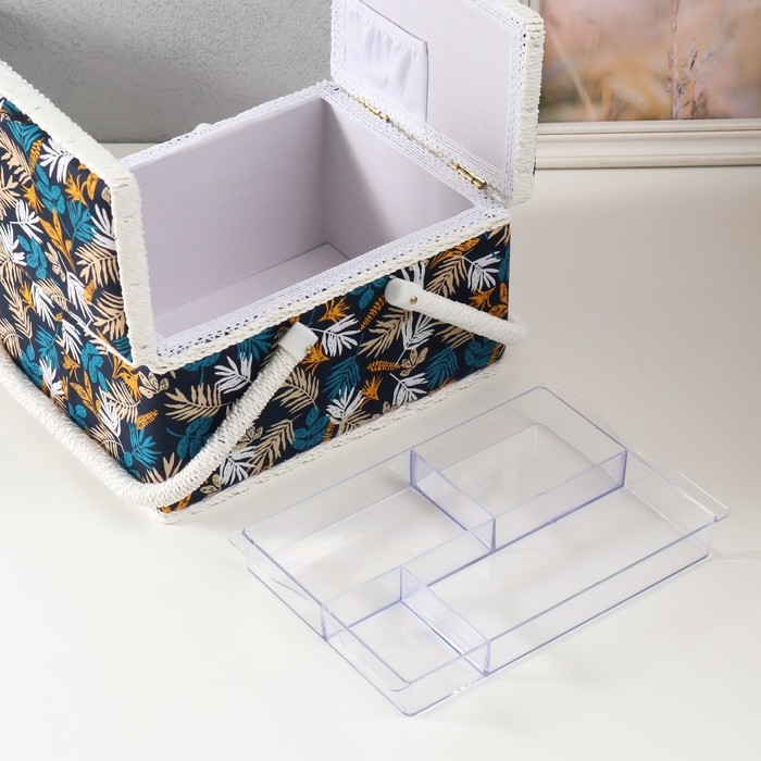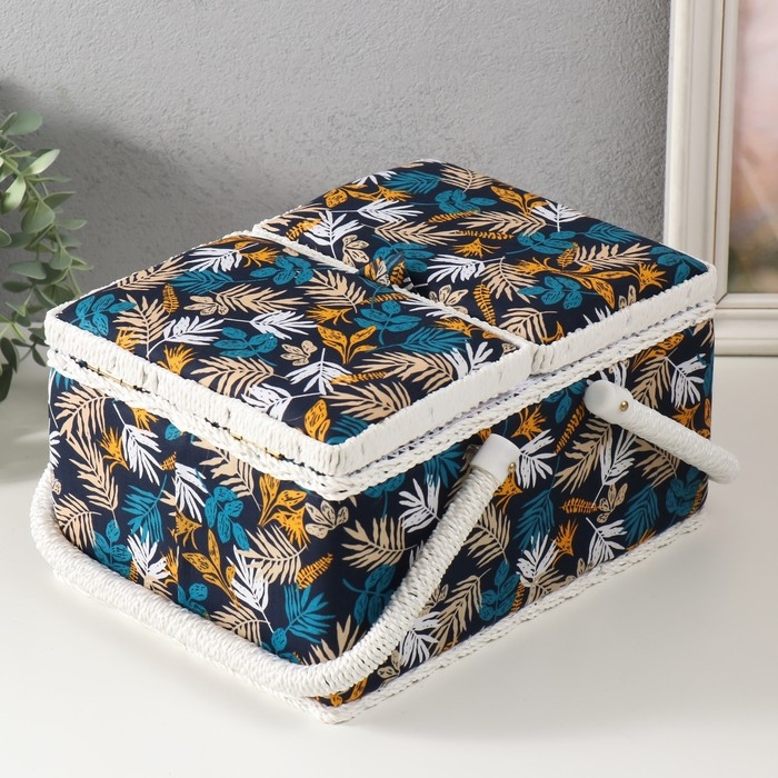 Шкатулка для рукоделия "Лесные веточки на синем" 19х26х14,5 см