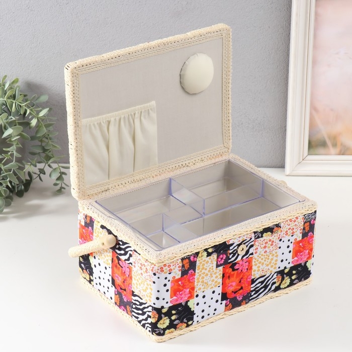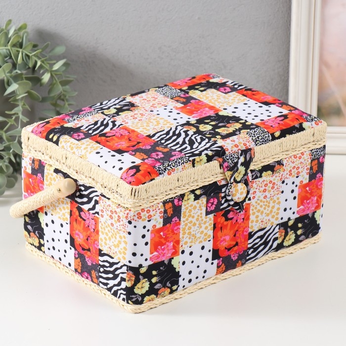 Шкатулка для рукоделия "Пэчворк. Цветы, горох и зебра" 19х26х14,5 см