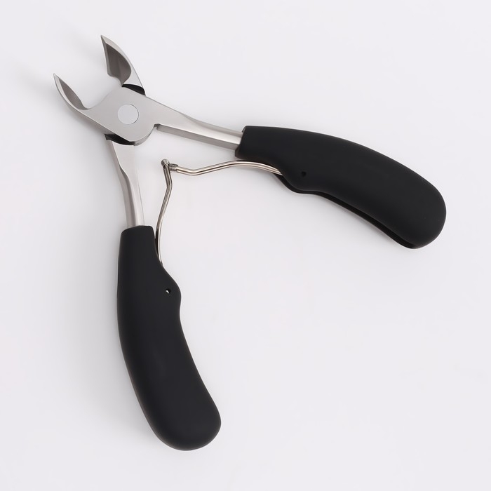 Кусачки-книпсер педикюрные, 9 см, прорезиненная ручка, цвет чёрный/серебристый