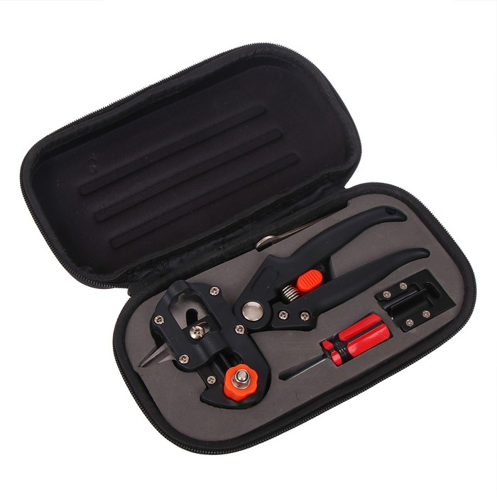 Набор профессиональный: секатор прививочный, 2 насадки, отвёртка, гаечный ключ, в чехле, Greengo