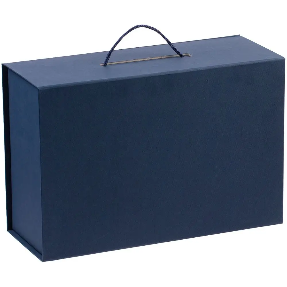 Коробка выполнена из переплетного картона, кашированного дизайнерской бумагой Malmero «Благородный синий», с крышкой на магните.