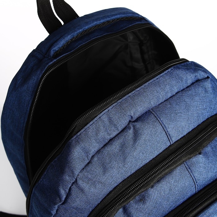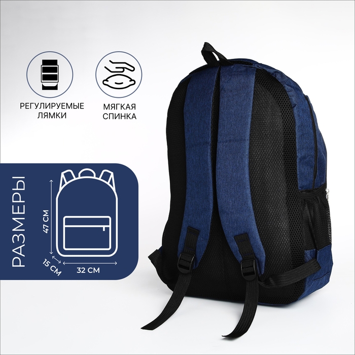 Рюкзак школьный из текстиля, 2 отдела, 4 кармана, цвет синий
